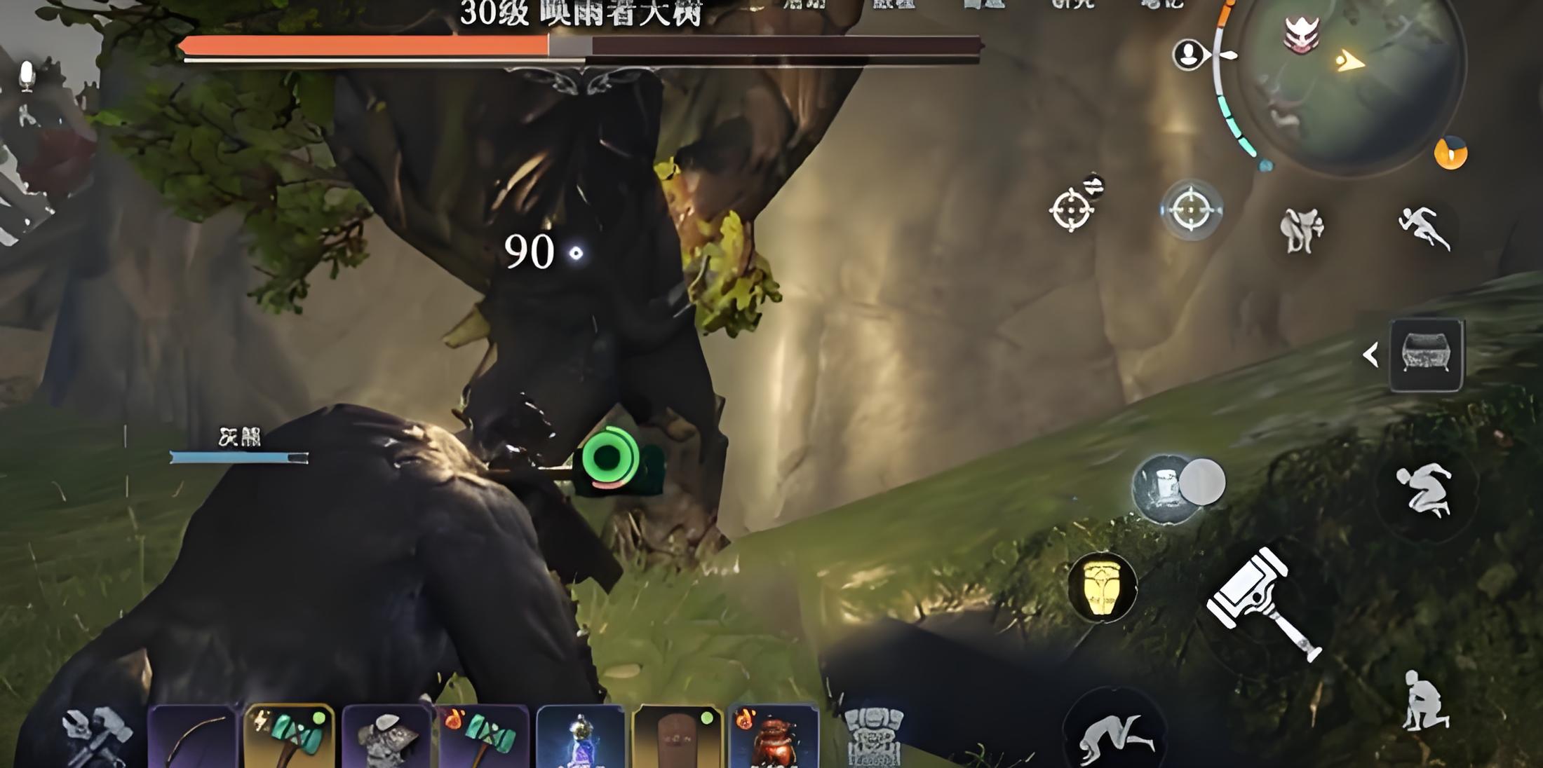 4、单刷唤雨者大树要带够治疗药水,备耐久高的装备还可召唤宠物牵制,用弓箭拉扯输出,首领硬直时换铁锤打爆发,灵活走位找反击时机。