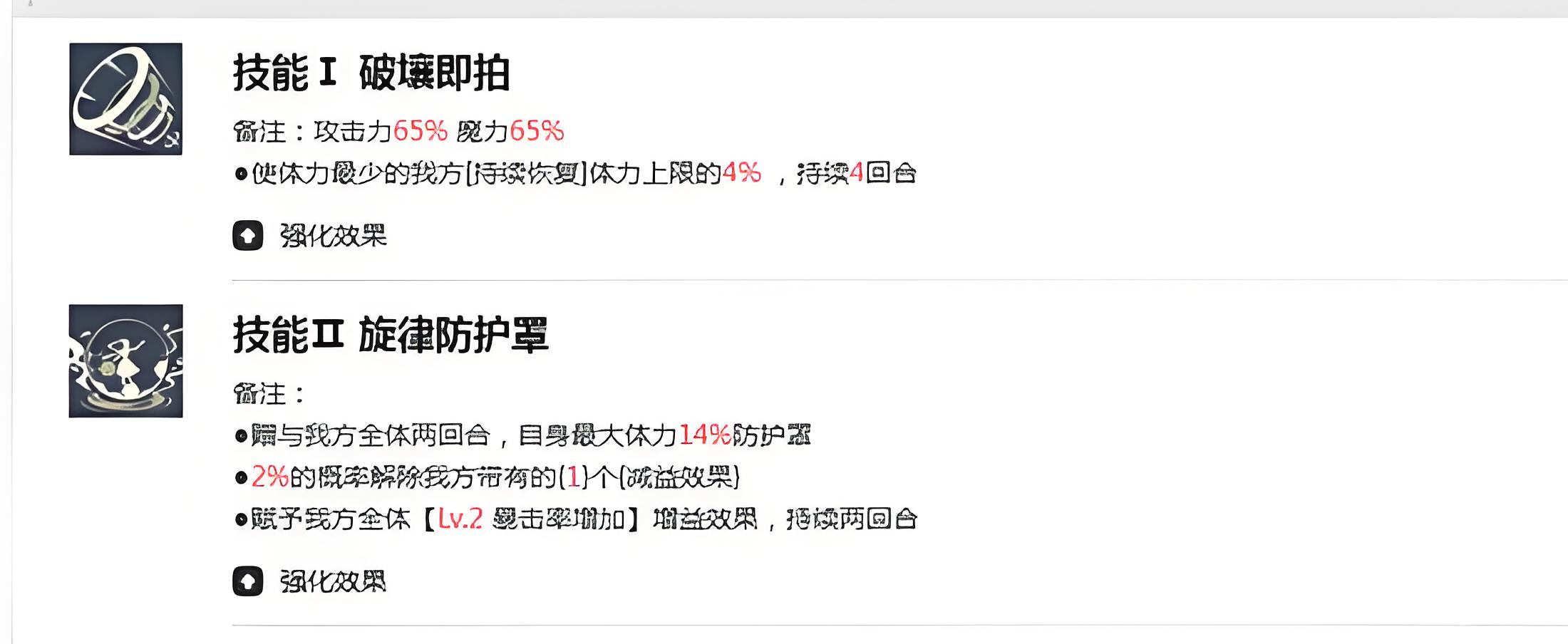 3、旋律防护罩是招牌技能为全体队友施加持续两回合的护盾,护盾值基于自身最大体力14%还能提升全队暴击率兼顾保护与输出增强。