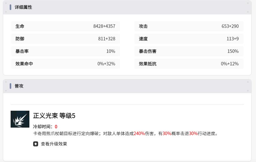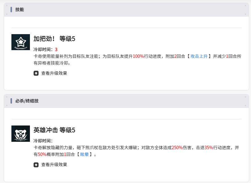 2、卡奇技能机制围绕控制与行动条展开,回合制战斗中战术价值强,面对高频率出手的敌方阵容时表现突出,能有效干扰敌方战斗节奏。