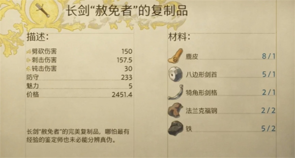 5、接着我们在西格斯蒙德的营地的铁匠处购买八边形剑首、犄角型剑格、法兰克福钢。