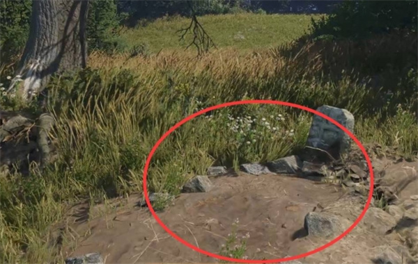 10、来到墓地的围墙外面,在红花的位置挖开地面获得遗骨。