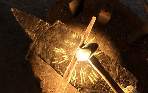 2、随后我们在他的箱子里获得材料,在锻造台出进行锻造。