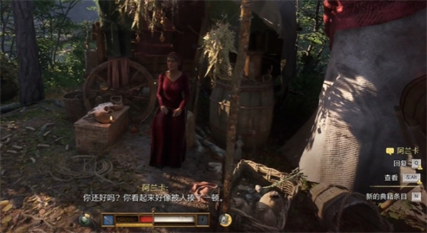 2、学完技巧后来到旁边的营地,找到一位老婆婆阿兰卡。
