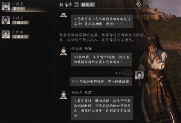 2、随后和他对话,他会不断的追问将军祠的宝箱在哪。