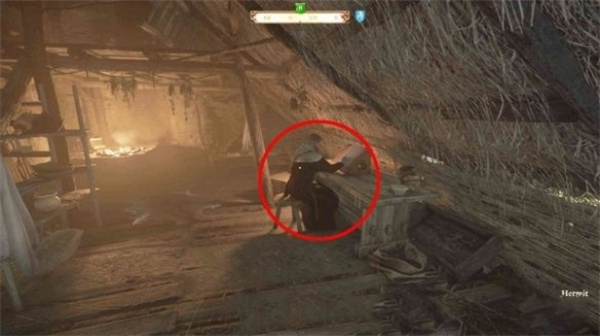 沿着一条小路就能够来到隐士的小屋,接着击杀里面的人或偷窃它的书可以发现真正的隐士早已死去。