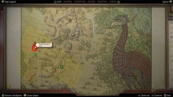 在一颗山毛榉树下面,就能发现真正的隐士坟墓,拾取上面的剑然后将他提交给铁匠铺即可完成任务。