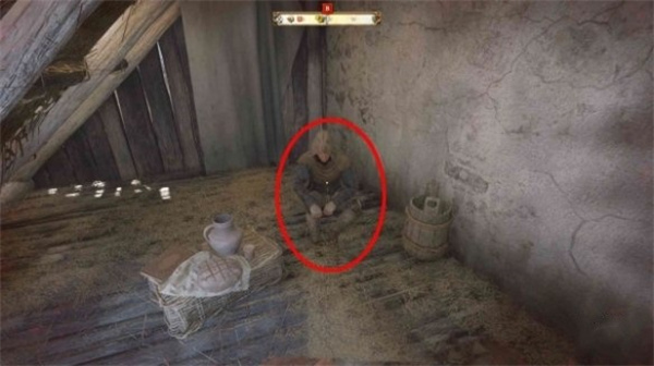 在这个谷仓的角落中我们就可以发现NPC山羊皮。