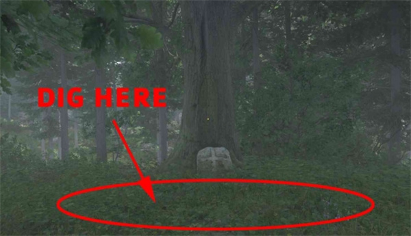 秘密通道的入口位于搜索区域的北部,在一棵树下,树下有一个白色的十字架。