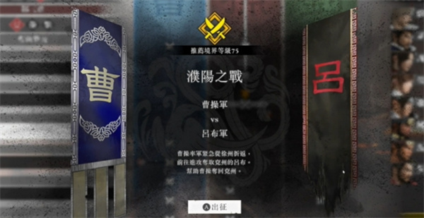 战斗特点:与虎牢关之战类似,但用最简单的难度也可以取得方天画戟。