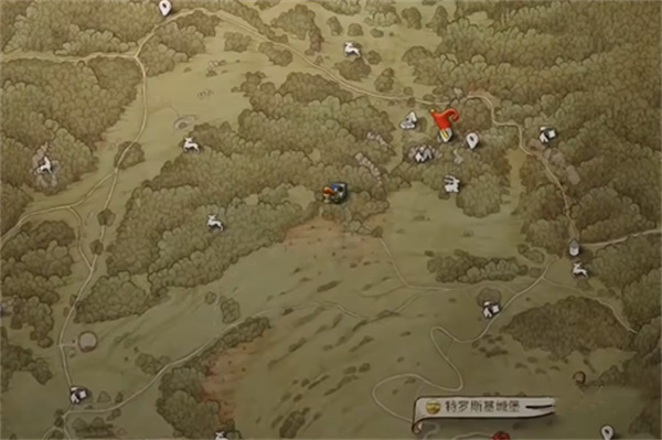 2、第一件物品就在特洛斯基城堡上方的森林里,挪开山洞的石头即可找到该物品。