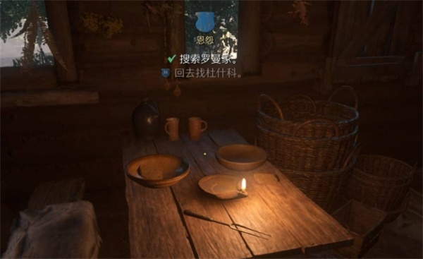 9、进入之后对桌上的碗和帕芙莱娜的篮子进行调查。