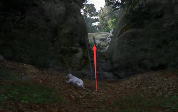 15、前往南面的树林,不用管这里的狗,爬梯子上去。