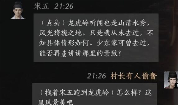 玩家:(拽着宋五跑到龙虎岭)怎么样?这里风景美吧。
