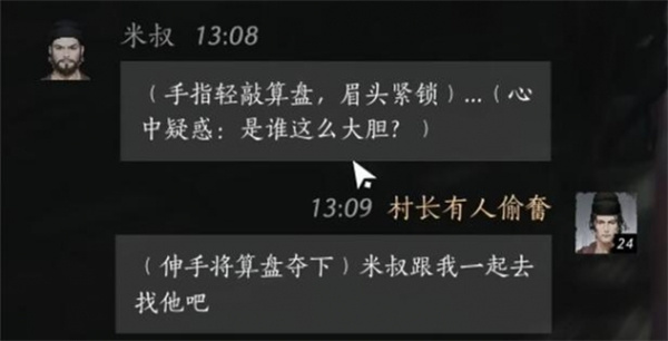 玩家:(伸手将算盘夺下)米叔跟我一起去找他吧。
