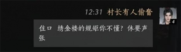 玩家:住口 绣金楼的规矩你不懂?休要声张