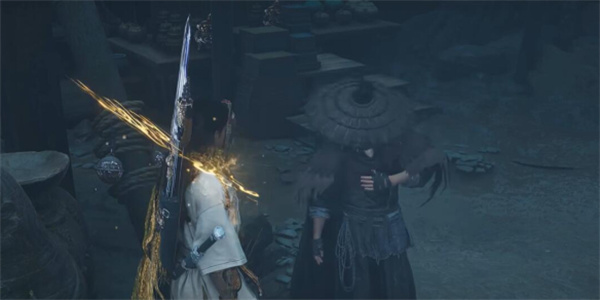 2、记得站在绿色灯笼附近免得掉血,图示位置对话【黑袍使】后往前走;