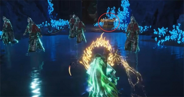 4、图示位置开宝箱拿到【兜鍪】,再去阴兵聚集处拿【铁枪】;
