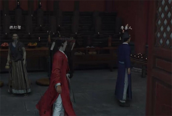 1、先过来对话【燃灯僧】然后出门右拐在树下找到【李善人】对话;