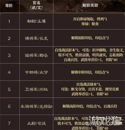 主公可通过拆除城池耐久、获取武勋或随时间积累功名,达标后可晋升官职,解锁兵符、自选战法影本、自选战法镜本及印信点等众多奖励。