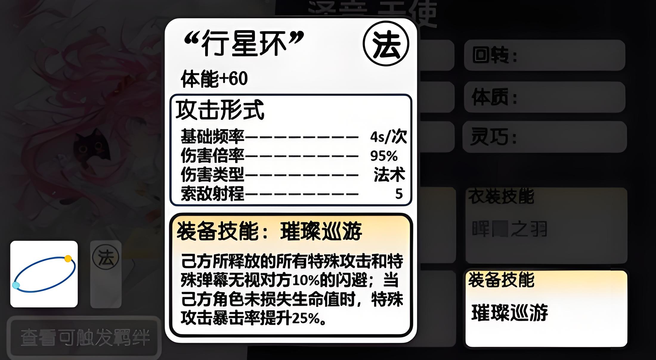 4、优选装备技能璀璨巡游,让己方特殊攻击和弹幕无视敌方10%闪避,己方满血时特殊攻击暴击率额外提升25%,适配高爆发角色。