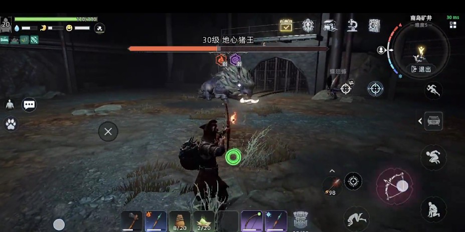 进去以后就能看到30级的boss地心猪王了,这里大家要注意隐匿突袭这个人物天赋要用上,这个天赋在没有仇恨的时候,只要蹲下进行的第一下攻击能够打出百分百的暴击,开启战斗时,玩家先蓄力一下,平A两下跳起来就能直接把猪王的第一次冲锋给躲过去。