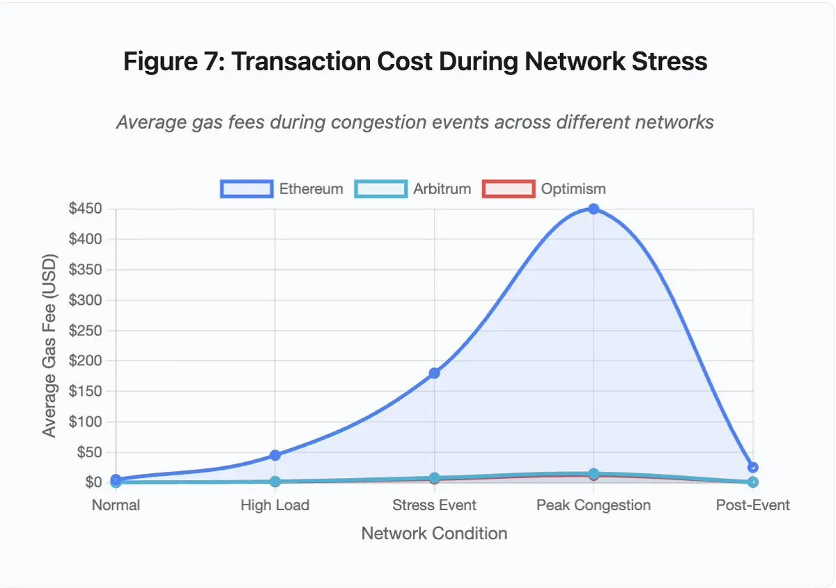 - 以太坊: 5 美元 (正常) → 450 美元 (拥堵峰值) – 增长 90 倍