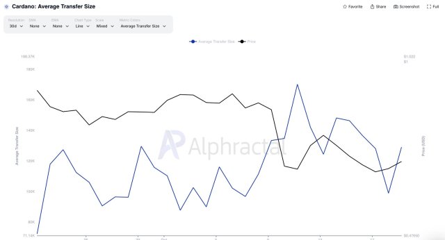 具体而言,链上平均交易规模的扩大印证了机构活动的增长。Minswap首席迷因官(CMO)兼市场专家Mintern指出,该网络过去30天的平均交易金额已突破10万美元。
