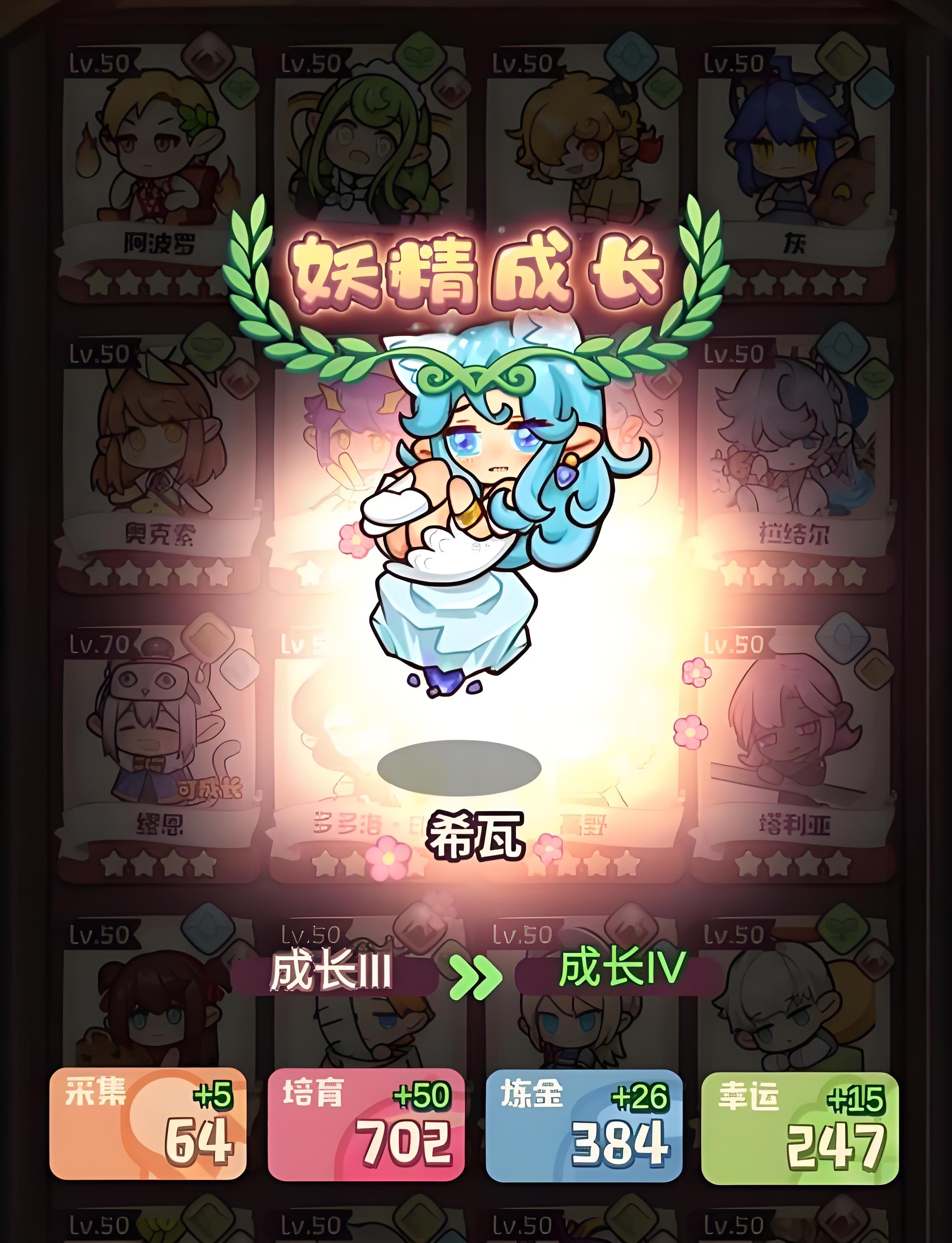 4、升级区域后还需搭配合适妖精采集,妖精采集值决定采集结果,低采集值妖精无法采集高级材料,需进化培养提升数值。