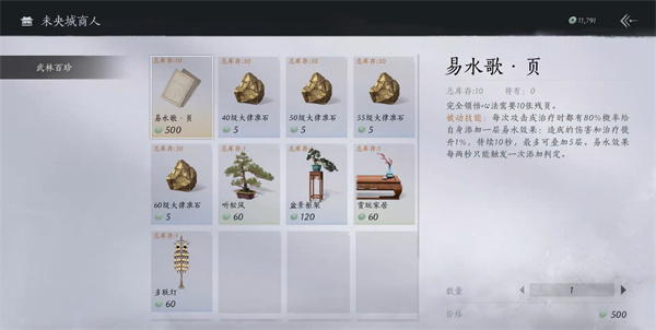 心法易水歌获得可以去清河的不羡仙的附近找一个牌楼,牌楼旁有一个名叫唐宝的npc,我们找他对话。对话点击看看他卖什么,里面就有易水歌残页,买10个就能合成心法:易水歌。
