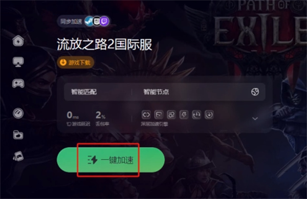 找到流放之路2国际服加载页面,左侧就能看到一键加速的按钮,直接点击使用即可。