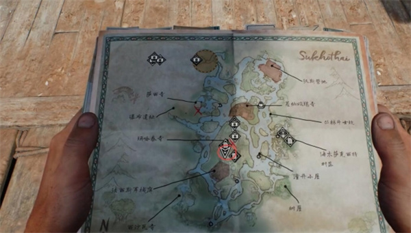 1、进入【玛哈泰奇】来到帐篷的左上角,互动桌子上的谜题笔记;