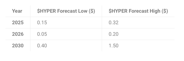 这种稀缺性赋予其强劲市场优势。据文章预测,$HYPER可能在2025年末或2026年初迎来显著上涨动能,目标价位0.32美元。