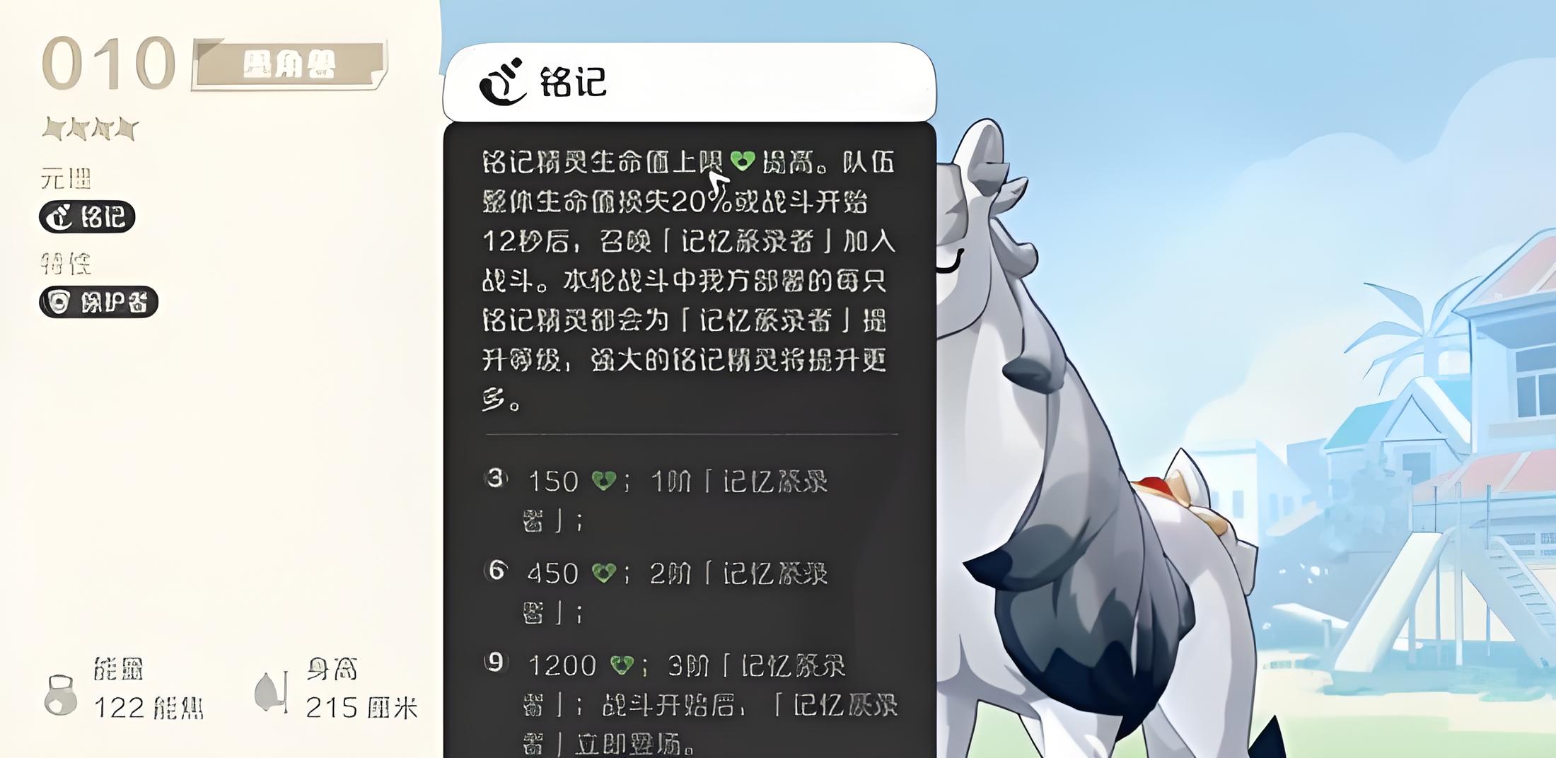 3、围绕铭记元理羁绊构建队伍铭记属性精灵越多羁绊等级越高,可召唤记忆篆录者,各阶分别提供对应增益与敌人削弱效果。