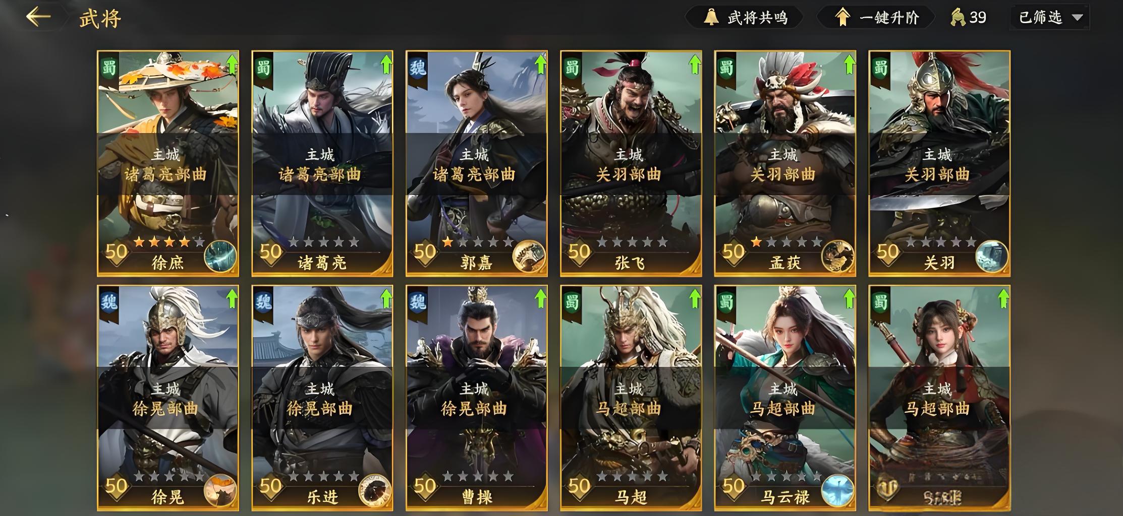 3、高配阵容主将诸葛亮,副将黄月英和法正,三人技能联动实现输出拉满,诸葛亮概率释放两次主动技能,快速拉开双方兵力差距。
