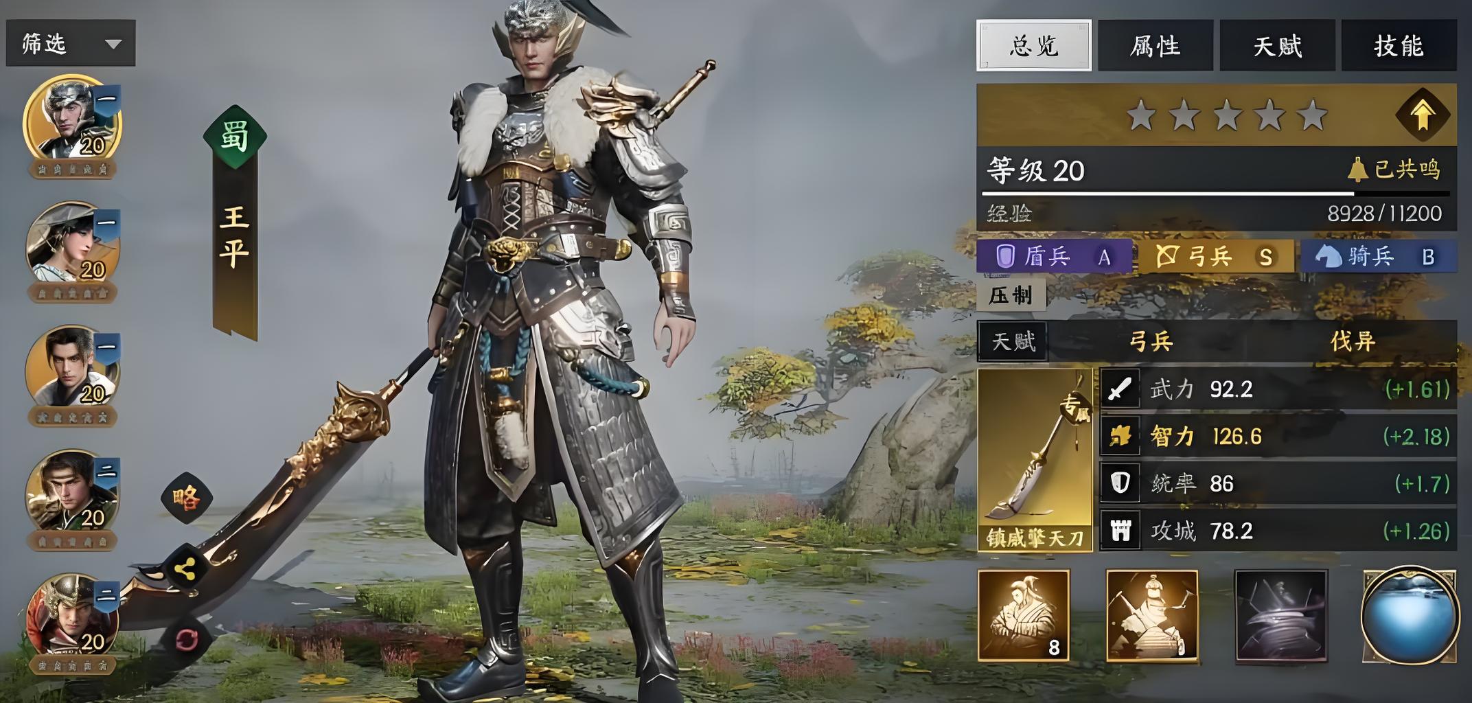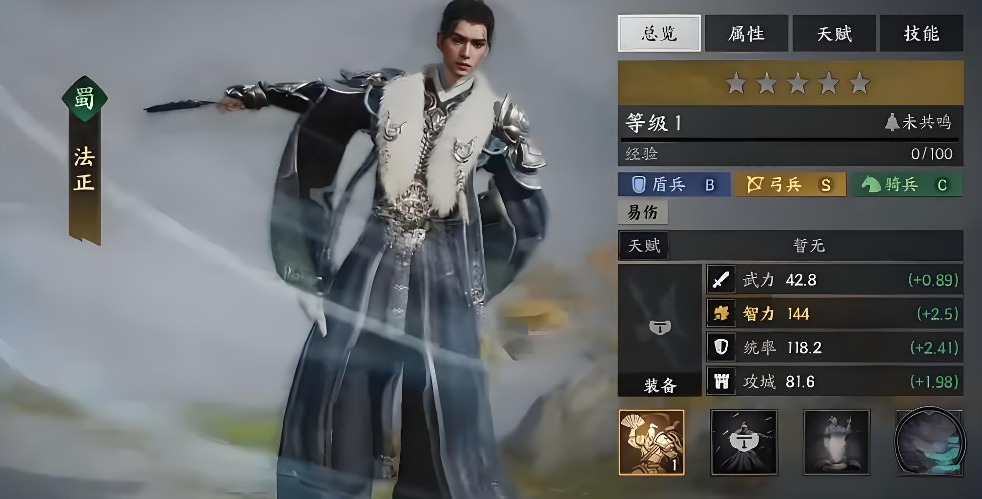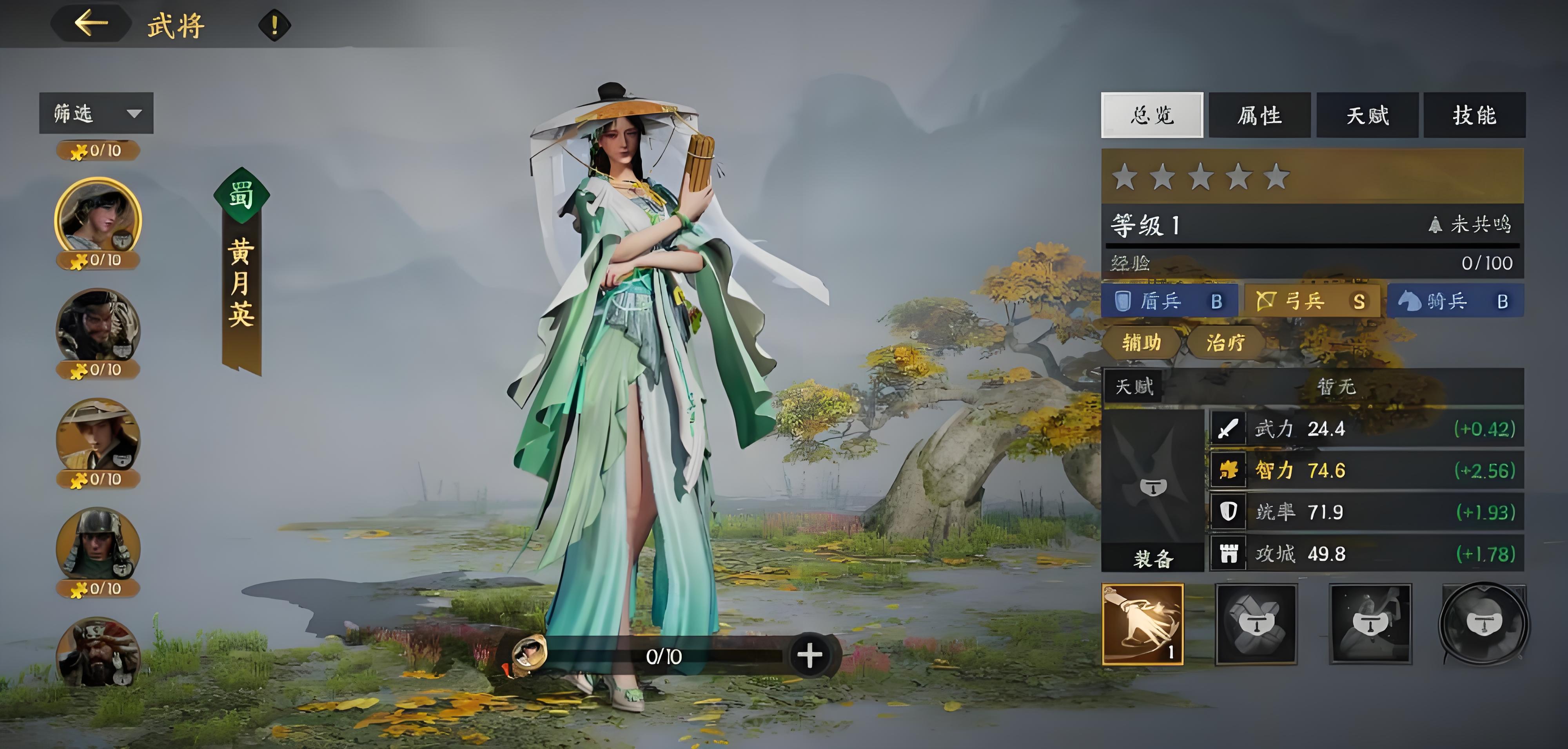 4、诸葛亮需重点培养智力,基础技能有步罡踏斗陇上妆神卧龙出山,步罡踏斗为核心输出,伤害受自身智力及双方智力差影响。