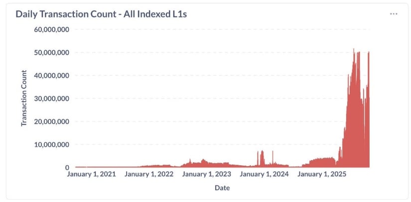 链上数据显示Avalanche交易笔数正冲击历史高位,日处理量比肩所有过往记录。来自AihansuCrypto的最新网络数据显示,Avalanche已处理近6000万笔交易,标志着其子网和dApp生态正经历爆发式扩张。如此稳定的高吞吐量表明验证者活动及DeFi与游戏生态的采用率正在提升。