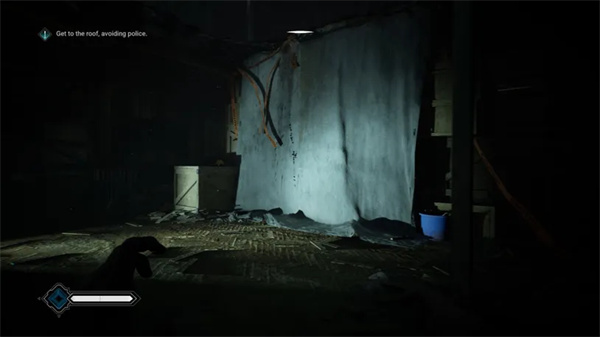 分散警察的注意力后,从门口向右走。继续向右走,警察最初看的地方。这会让您回到之前尝试到达屋顶的目标。