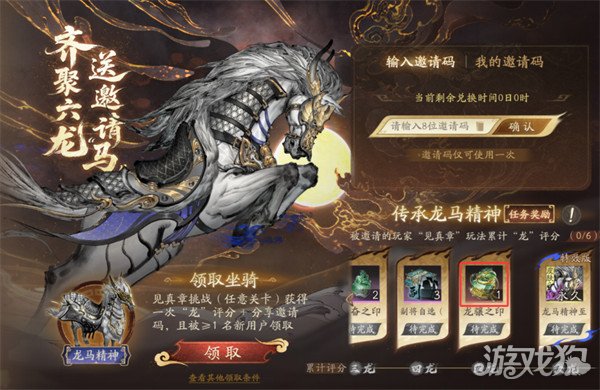 4. 在“龙马精神”的活动中,明公只需完成任务即可获得福利,其中可获得1个龙骧之印。