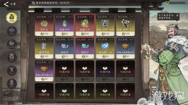 1、在群雄逐鹿的商店中,明公可使用一定数量的代币兑换1个龙骧之印,商店将会每月更新一次。