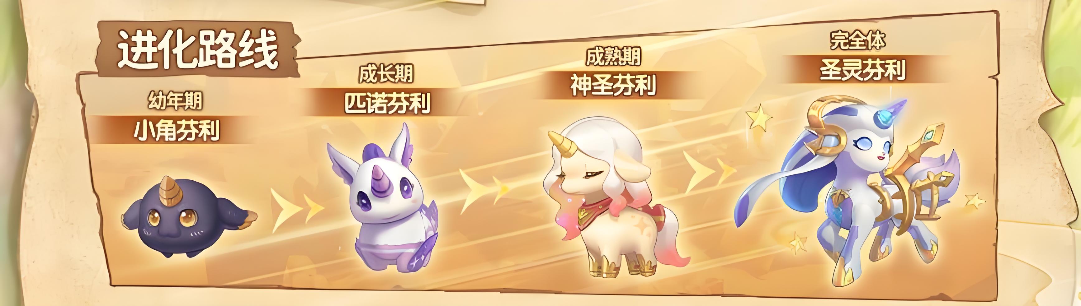3、进化路线从幼年期小角芬利,到成长期匹诺芬利,再到成熟期神圣芬利,最终进化为完全体圣灵芬利。