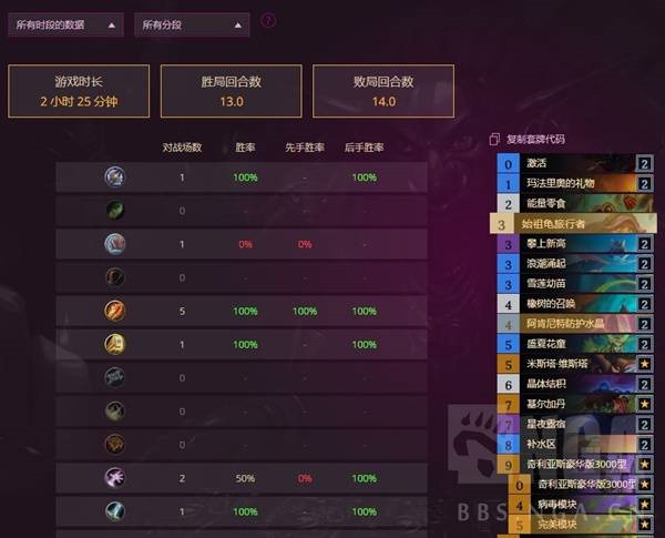 赢的对局:1把奥丁战 1把污手骑 5把法师(4个元素法 1个大法法)1个轮盘术(他应该不太会,或者轮盘沉底,爆了自己泰坦和无界空宇,轮盘到牌库空才放 )1把星舰DK