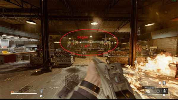 在“追逐Essaidi和Seghir”的目标中,你会遇到一个市场。靠右走,你会发现在市场右侧的弹药箱旁边有扔刀。继续在市场上前进,直到你遇到一个迷你吧。Seghir会在吧台后面照顾你。只需逐渐降低他的健康水平,直到不到1巴,然后向他扔刀子。