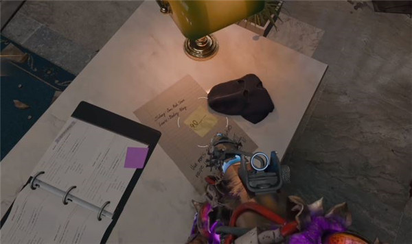 第一个金库数字可以在金库外找到。靠近金库入口的桌子上放着一个便条,上面有序列的第一个数字,位于灯下。