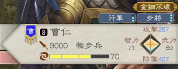 部队攻击/防御=兵科基础攻击/防御+兵力/5000*【部队统率】+特殊加成(奇才/特技等)