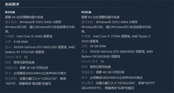 显卡: NVIDIA GeForce GTX 1660(6GB) 或更高, AMD Radeon RX590(8GB) 或更高