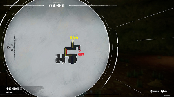 食人洞穴01/01,有遗物的中层,地图南部宝箱1,里面是缟玛瑙。中间钻洞的遗物宝箱1,里面是带螺丝的矿物。