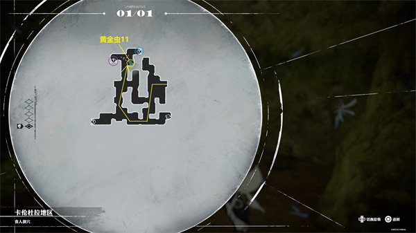 食人洞穴01/01,有黄金虫的地下一层,地图南部宝箱2,里面是海蓝宝石。按照黄线走,获得黄金虫11。黄金虫右侧篮圈上去的宝箱,宝箱3,里面是英雄光叶。黄金虫左侧紫圈上去,入口处旁边的宝箱,宝箱4,里面是紫水晶。深处宝箱5,里面是气力之香。