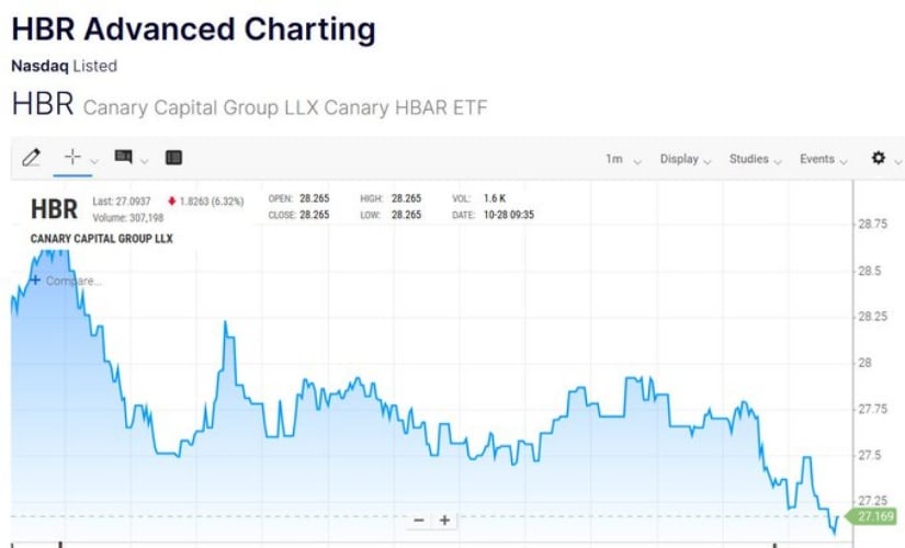 Canary Capital旗下HBAR ETF首发吸金800万美元