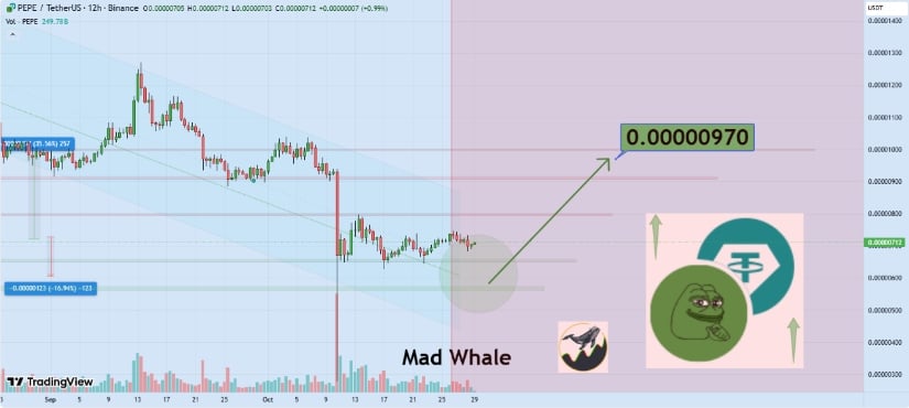 周线数据显示,若当前支撑位保持稳固,PEPE/USDT有望实现35%的合理涨幅至0.0000097美元。来源:TradingView@MadWhale