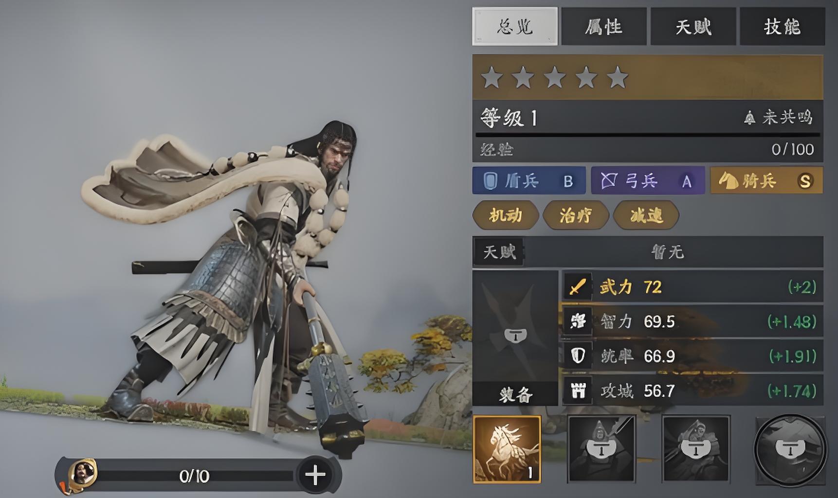 3、自身闪避属性突出且契合骑兵高机动性,能在战场上灵活穿梭规避集火,攻守兼备的特点使其在多种阵容体系中都有合适位置。